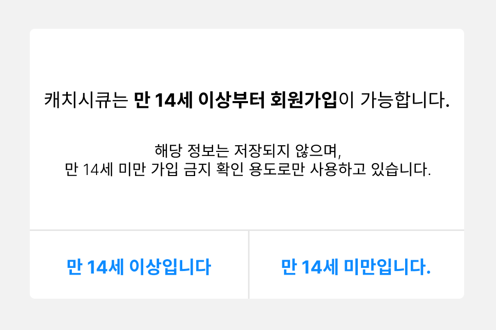 휴대폰 본인인증을 통해 만 14세 미만 아동을 판별할 수 있습니다.