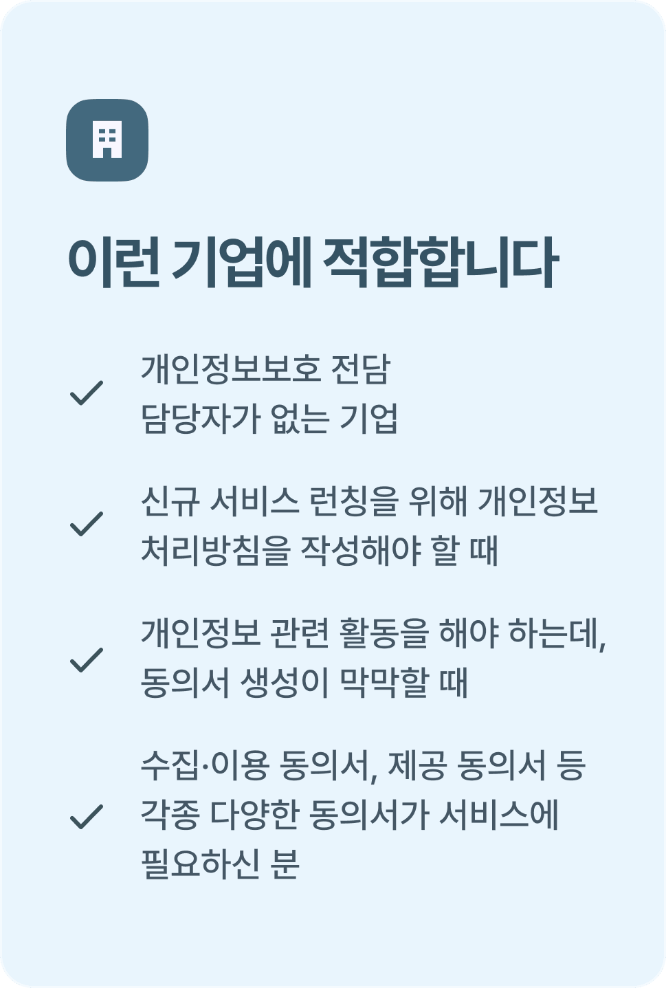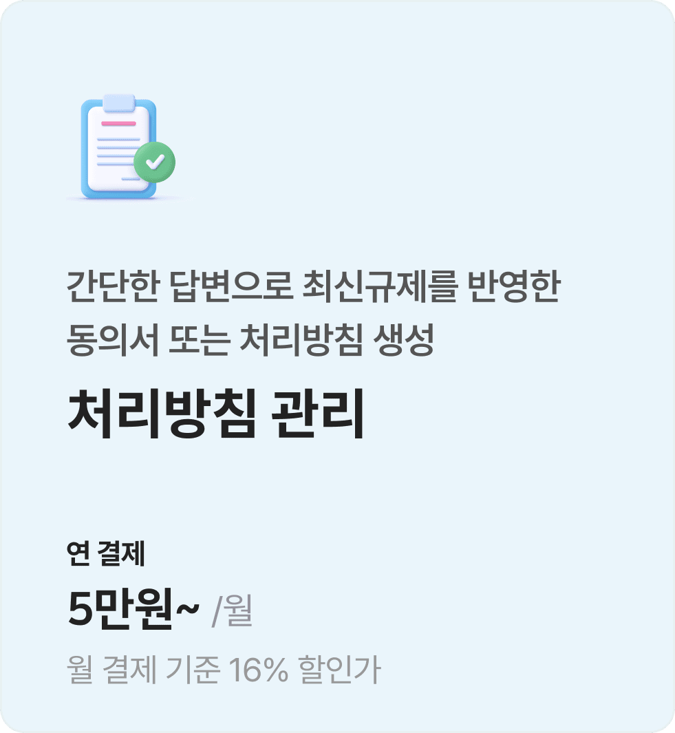 개인정보보호와 관련된 동의서와 처리방침 등의 문서를 간편하게 생성하고 유지·관리할 수 있습니다.